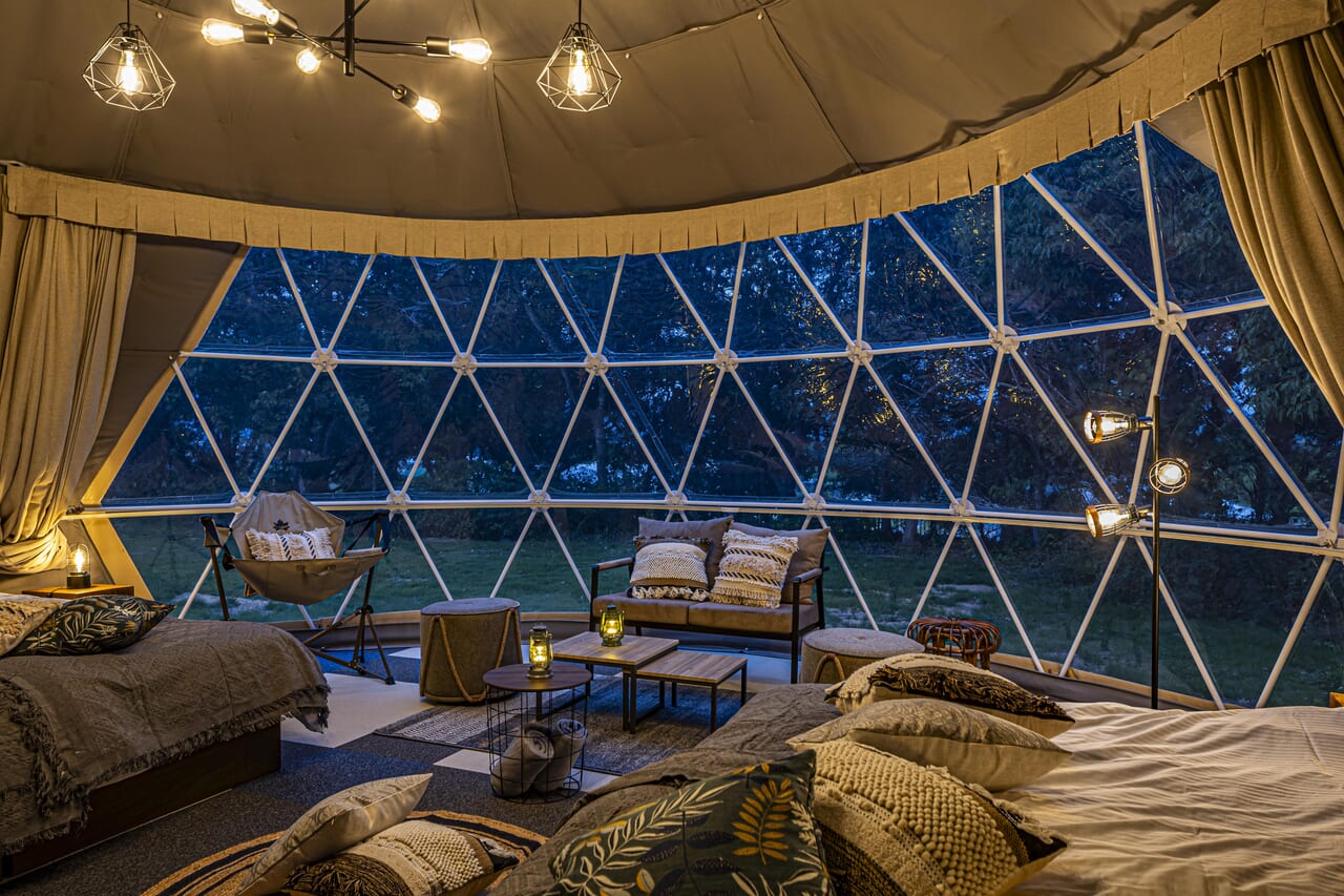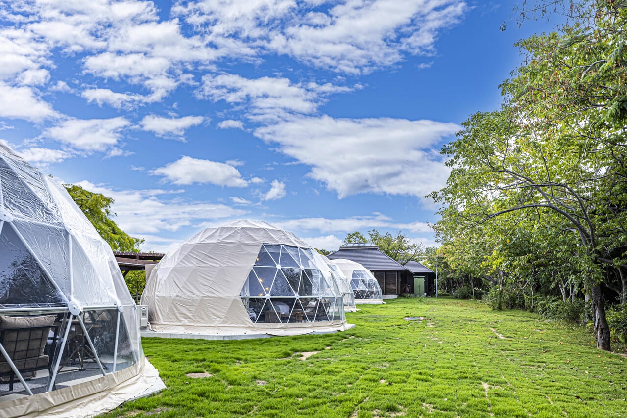 愛犬と泊まれるヴィラをはじめプライベートコテージ、ドームテントなど多彩な宿泊スタイルから理想のアウトドアステイをお選びいただけます。