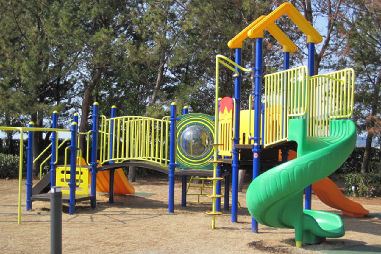 緑豊かな敷地内には、合間に楽しめる滑り台などの遊具を設置しています。