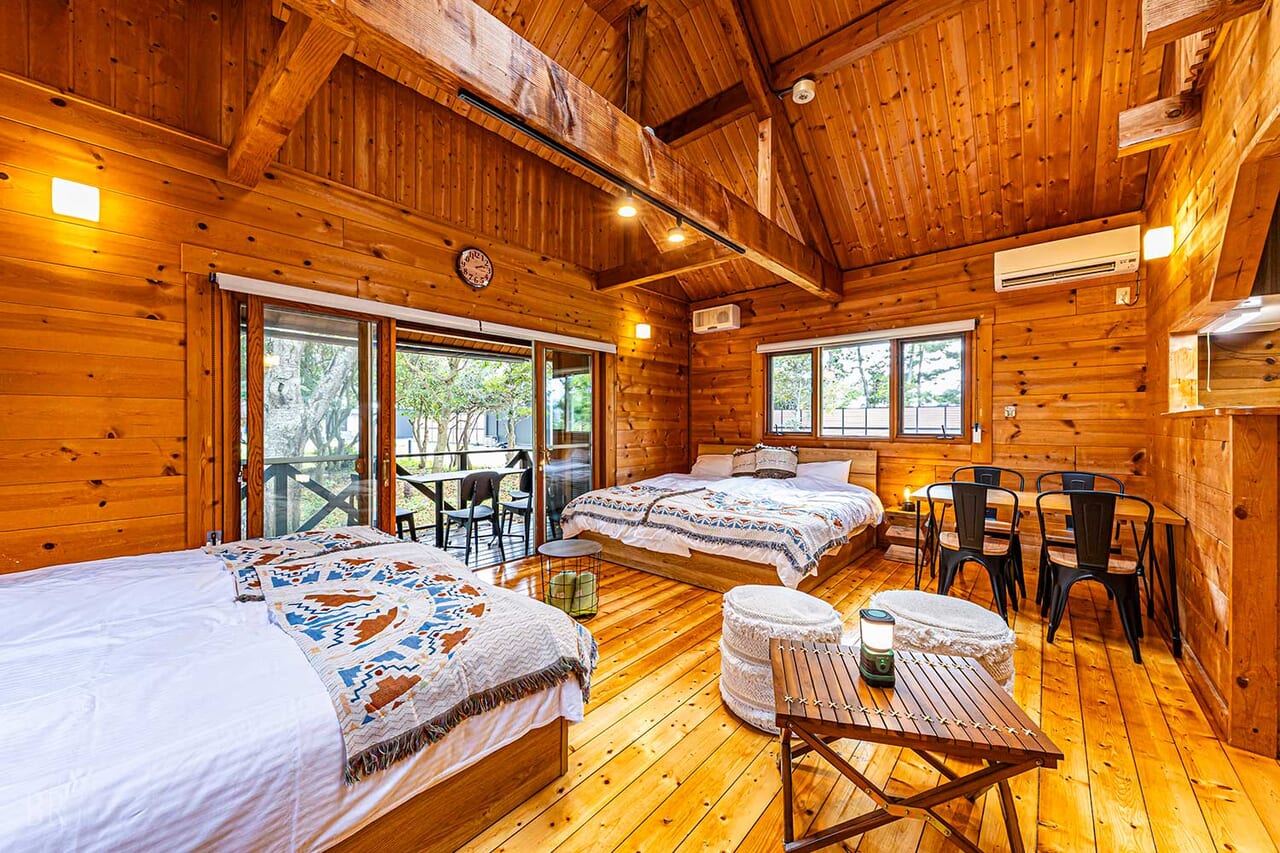 | 室内設備 | トイレ、バスルーム、キッチン、冷暖房、専用食事スペース、BBQグリル(素泊まりの場合は有料オプションとなります)、冷蔵庫、電気ポット、電子レンジ、IHコンロ |